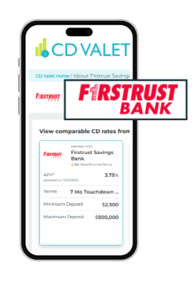 **CD Valet provides rates for an ever-growing number of financial institutions. A financial institution must post CD rates on its public website to be included. All financial institutions that publicly post their CD rates and have more than $250 million in total assets are automatically listed. Financial institutions under $250 million in total assets may be included if they offer competitive and publicly available rates. CD Valet includes many of the largest financial institutions and online financial institutions with a presence across the nation.